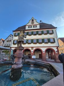 Nach der Ankunft empfing uns Bürgermeister Christian Walter ganz persönlich. Er nahm sich Zeit, uns in die Besonderheiten Weil der Stadts einzuführen: Die ältesten Häuser stammen aus dem 14. Jahrhundert, und die Stadt blickt auf eine bewegte Geschichte zurück. Besonders eindrücklich schilderte er den großen Stadtbrand von 1648, als französische Truppen im letzten Jahr des Dreißigjährigen Krieges große Teile der Altstadt zerstörten. Seit dieser Zeit, so Walter, musste Weil der Stadt immer mit knappen Mitteln wirtschaften – und hat dennoch ihren besonderen Charakter bewahrt.